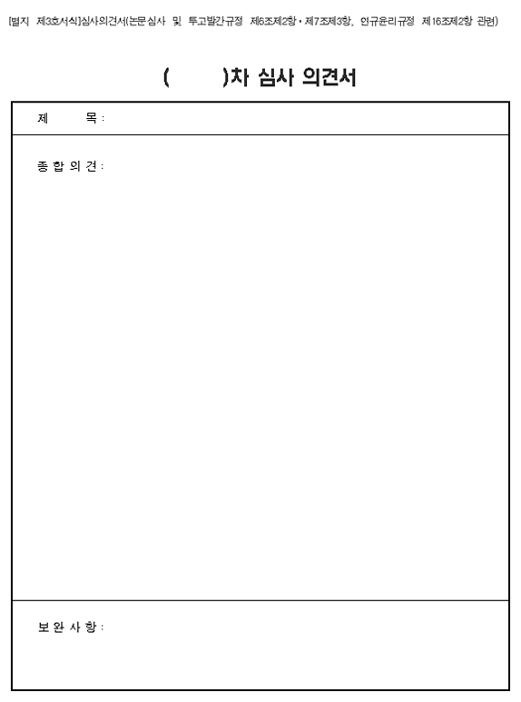 1. Æò°¡ Àǰ߼¿¡´Â ³í¹®¿¡ ´ëÇÑ ÀÚ½ÅÀÇ ÆÇ´ÜÀ» ¸íÈ®È÷ ³í¹®±ÔÁ¤ÀÇ ¾ç½Ä¿¡ µû¶ó ¹àÈú °Í. ¾ç½ÄÀº <º°Áö Á¦1È£¼½Ä>°ú <º°Áö Á¦2È£¼½Ä>°ú °°À½